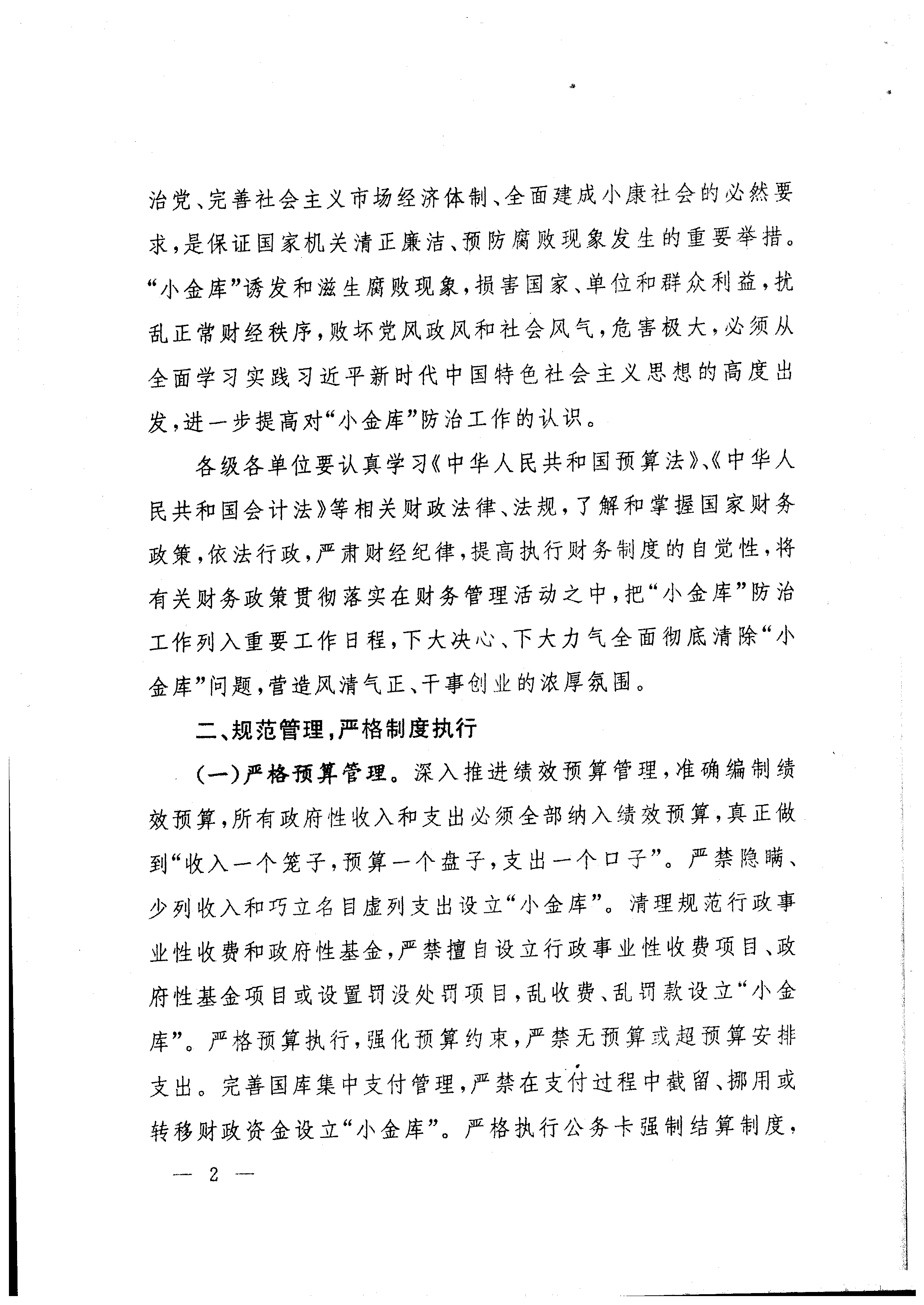 关于进一步加强财务会计管理、防治“小金库”的意见